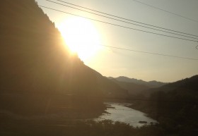 山々に囲まれ、川と並んで